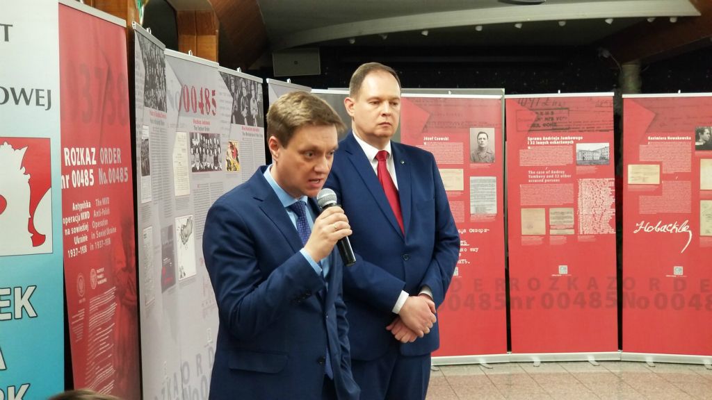 Wystawa "Rozkaz nr 00485. Antypolska operacja NKWD na sowieckiej Ukrainie 1937-1938" została przygotowana w języku polskim i angielskim. Na 16 planszach przedstawione zostały losy osób represjonowanych w ramach „operacji polskiej” przeprowadzonej przez NKWD w Związku Sowieckim w latach 1937–1938. Aresztowanych mężczyzn oskarżano o przynależność do Polskiej Organizacji Wojskowej, nieistniejącej od 1921 r., która miała rzekomo prowadzić działalność szpiegowsko-wywrotową na rzecz II Rzeczypospolitej. Na większości z nich wykonano wyrok śmierci. Żony „szpiegów” lub „wrogów ludu” były zsyłane na 5 do 10 lat do Kazachstanu za to, że nie informowały organów władzy sowieckiej o „kontrrewolucyjnej działalności szpiegowskiej” męża. Ich dzieci często odsyłano do domów dziecka lub więziono w obozach i koloniach pracy. W ramach „operacji polskiej” prześladowano nie tylko Polaków, lecz i osoby innych narodowości, w tym także Ukraińców.